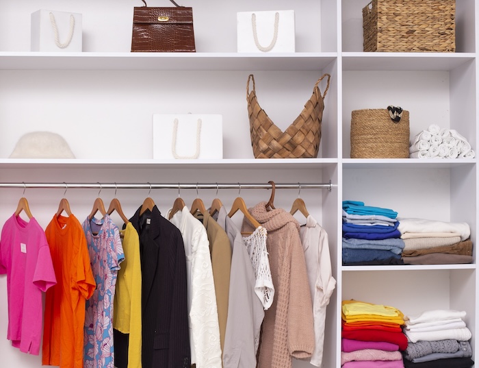 バッグは形によっては自立しにくいものもあります。立てられるものは立てて収納すると、バッグ同士が干渉せず見やすくなります。自立しにくいものはフックやハンガーバーを使って掛ける収納にすると、型崩れやシワを防ぎつつ一覧性もアップ。さらに仕切りや透明ケースを組み合わせると、小さめのクラッチバッグやポーチも迷子にならずに整理できます。